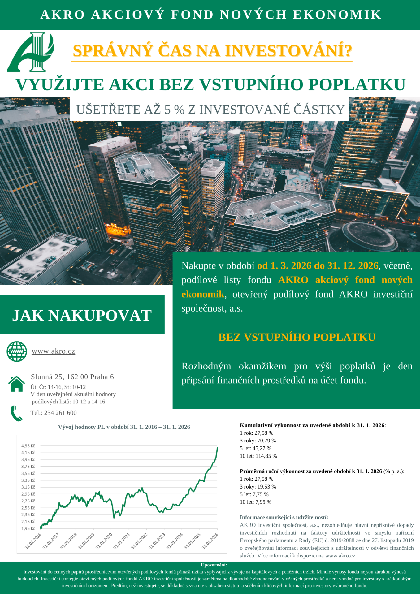 Od 1. 3. 2026 můžete investovat do AKRO akciového fondu nových ekonomik BEZ vstupního poplatku.